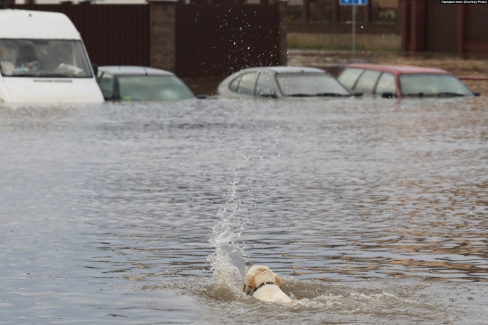Как видно из опубликованных фото и видео, много автомобилей оказались почти полностью в воде, спасатели по грудь в воде эвакуируют людей.