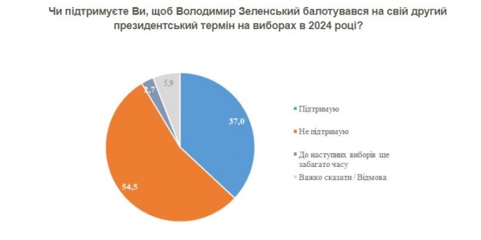 В частности, 37% респондентов поддерживают идею баллотирования на второй срок, не поддерживают - 54,5%.