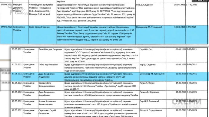 Детали: 9 апреля 2021 года в КС поступила жалоба экс-судьи Дарницкого райсуда Киева Евгения Вовка о конституционности статей закона о "Высшем совете правосудия", а также "О судоустройстве и статусе судей". Судьей-докладчиком был назначен Александр Тупицкий.