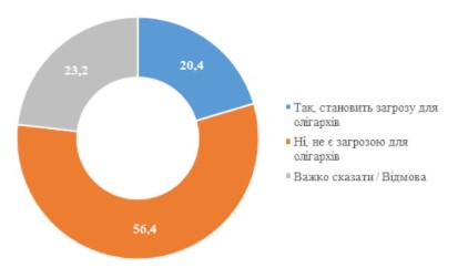 Детали: 56,4% - считают, что закон о деолигархизации не угрожает олигархам и только 20,4% респондентов считают, что он представляет для них угрозу.