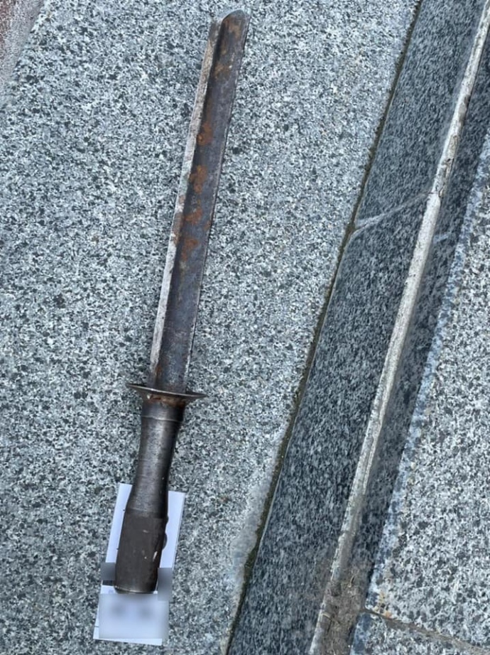 У него также изъяли короткий меч, который относят к холодному оружию.