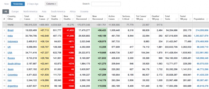 Детали: В частности, в Бразилии - 57 713 заражений, в Индии - 42 648, в Индонезии - 38 124.