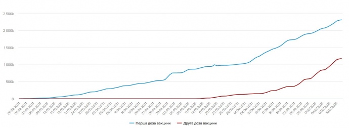 В воскресенье 11 июля в Украине 26 356 человек вакцинировали против COVID-19, в субботу 10 июля – 42 308 человек, тогда как в пятницу 9 июля сделали рекордные 114 660 прививок.
