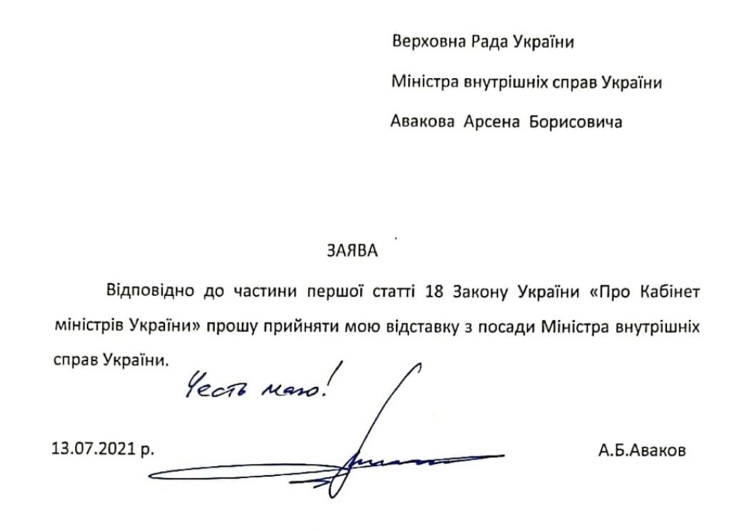 Прямая речь: "Согласно части первой статьи 18 Закона Украины "О Кабинете Министров Украины" подал заявление об отставке с должности Министра внутренних дел.