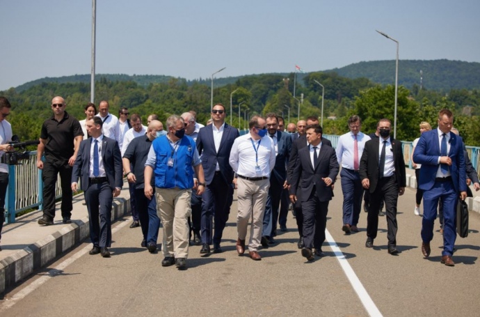 Детали: Зеленский прошелся Ингурским мостом, который является единственным пунктом пропуска в регионе, и пообщался с представителями мониторинговой миссии Евросоюза в Грузии.