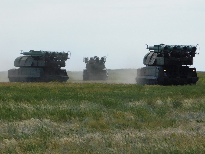 В завершение тренировки "Буки" выполнили условные пуски по воздушным целям, прикрыв таким образом важные объекты гражданской и военной инфраструктуры от авиаудара.