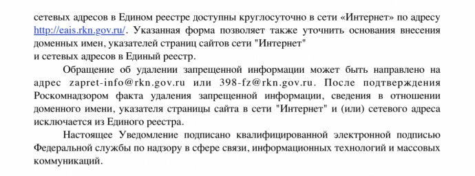 Россия требует "немедленно проинформировать об этом владельца сайта в сети "Интернет" и уведомить его о необходимости удалить информацию".