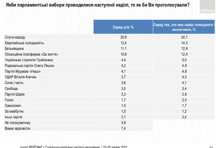 Дословно: "Парламентский рейтинг возглавляет партия "Слуга народа", которую готовы поддержать 24,1% среди тех, кто будет голосовать и определился с выбором".
