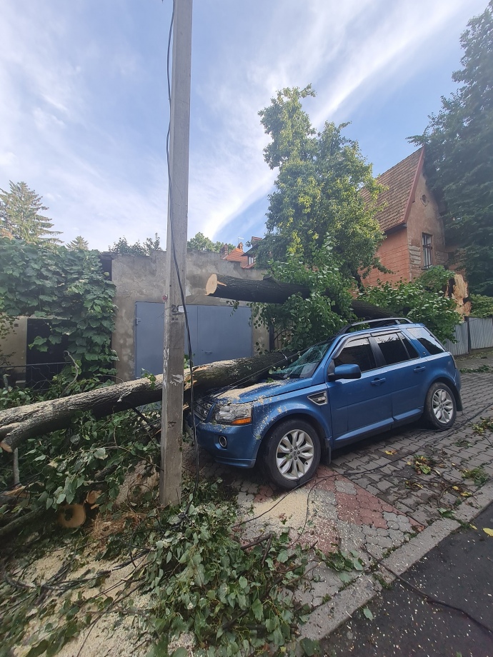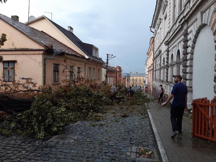 Ливень, который бушует в Черновцах второй день, наделал в городе беды - поваленные деревья, оборванные электропровода, затоплены улицы.