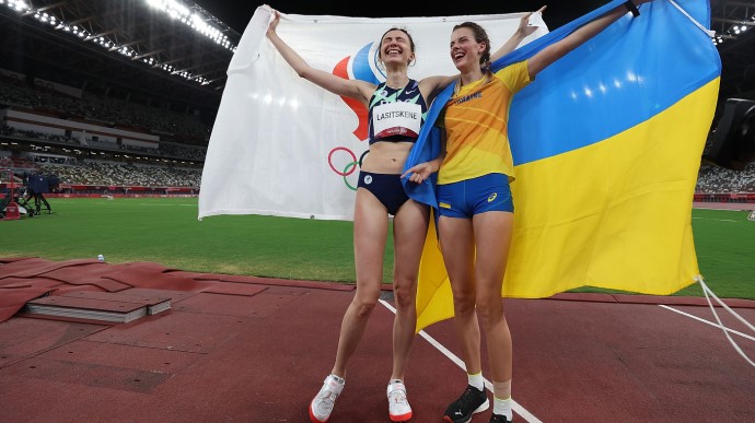 Призерка Олимпийских игр в Токио украинка Ярослава Магучих сделала совместное фото со спортсменкой Марией Ласицкене, представляющей Россию.