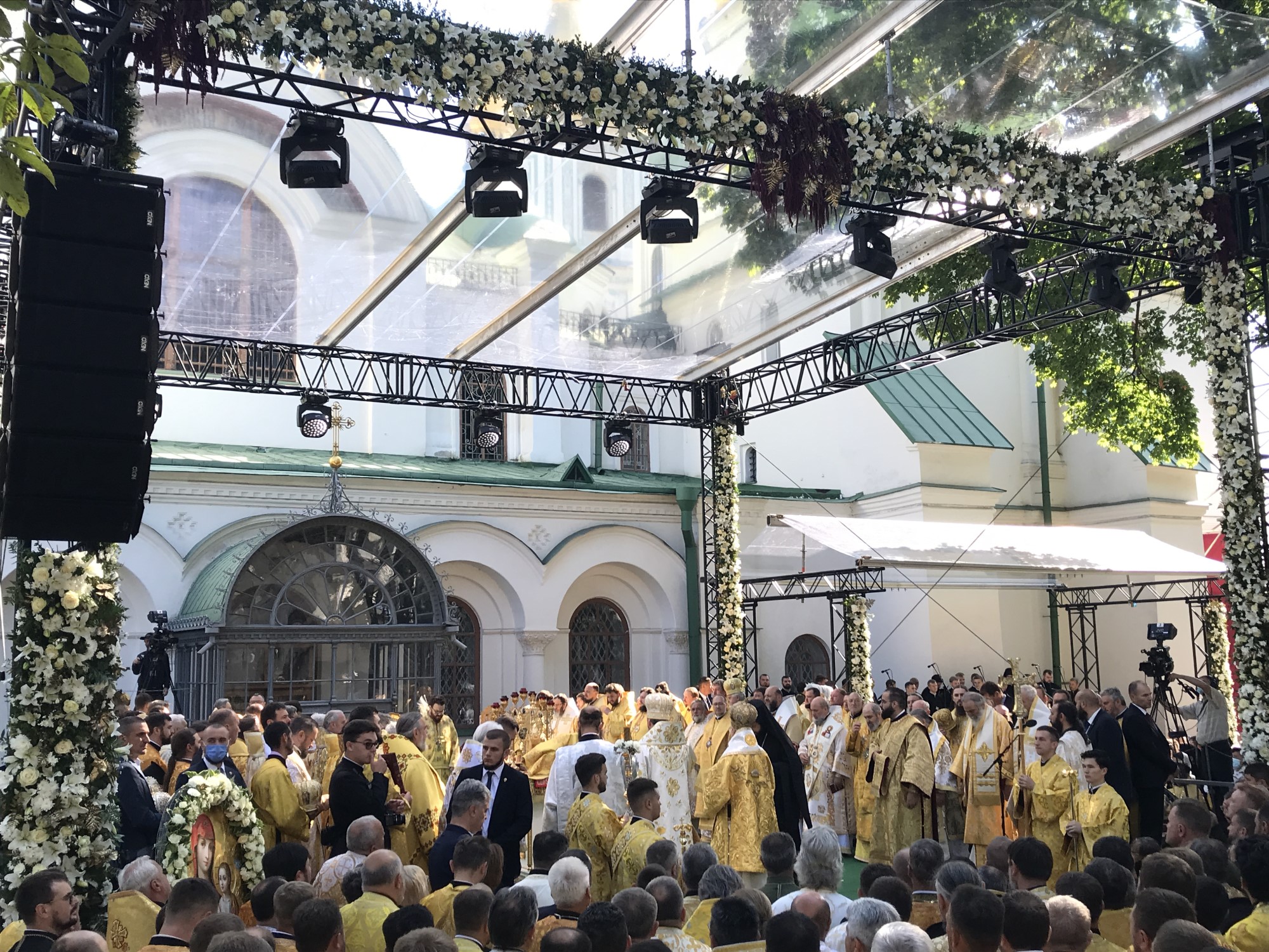 Детали: литургия продолжалась около 3 часов. Для ее проведения на территории Софии построили небольшую сцену, на которой стояли Варфоломей с Епифанием и около 50 священнослужителей. Все были без масок.