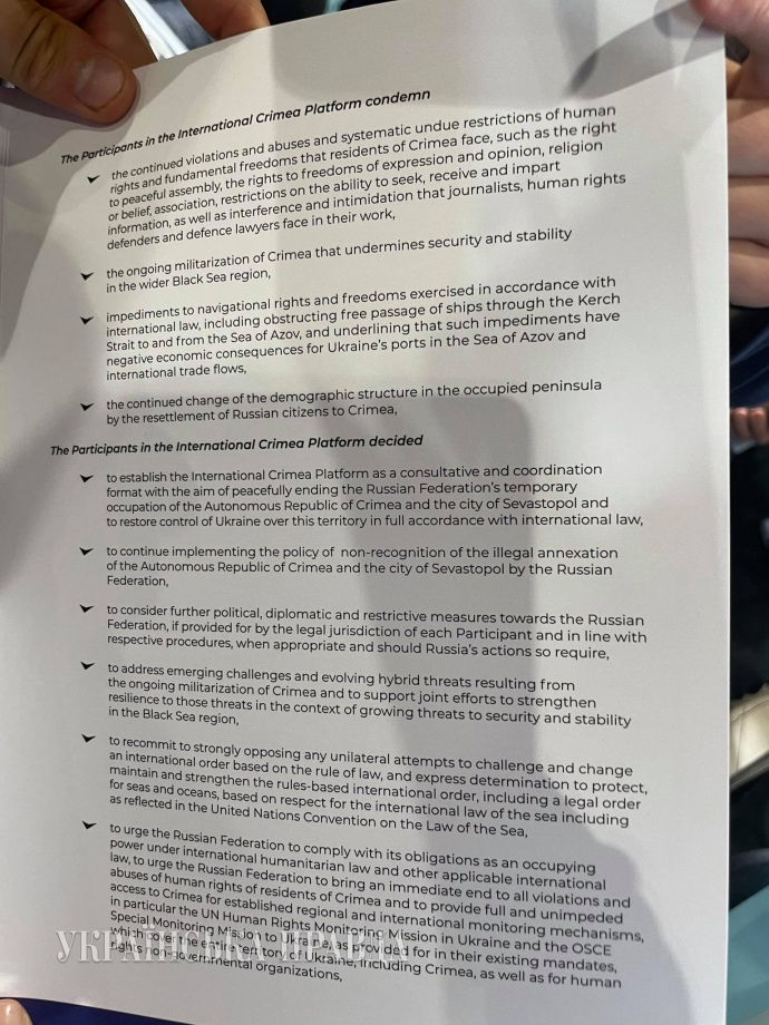 Детали: Зеленский подчеркнул, что декларация Крымской платформы одобрена всеми ее участниками.