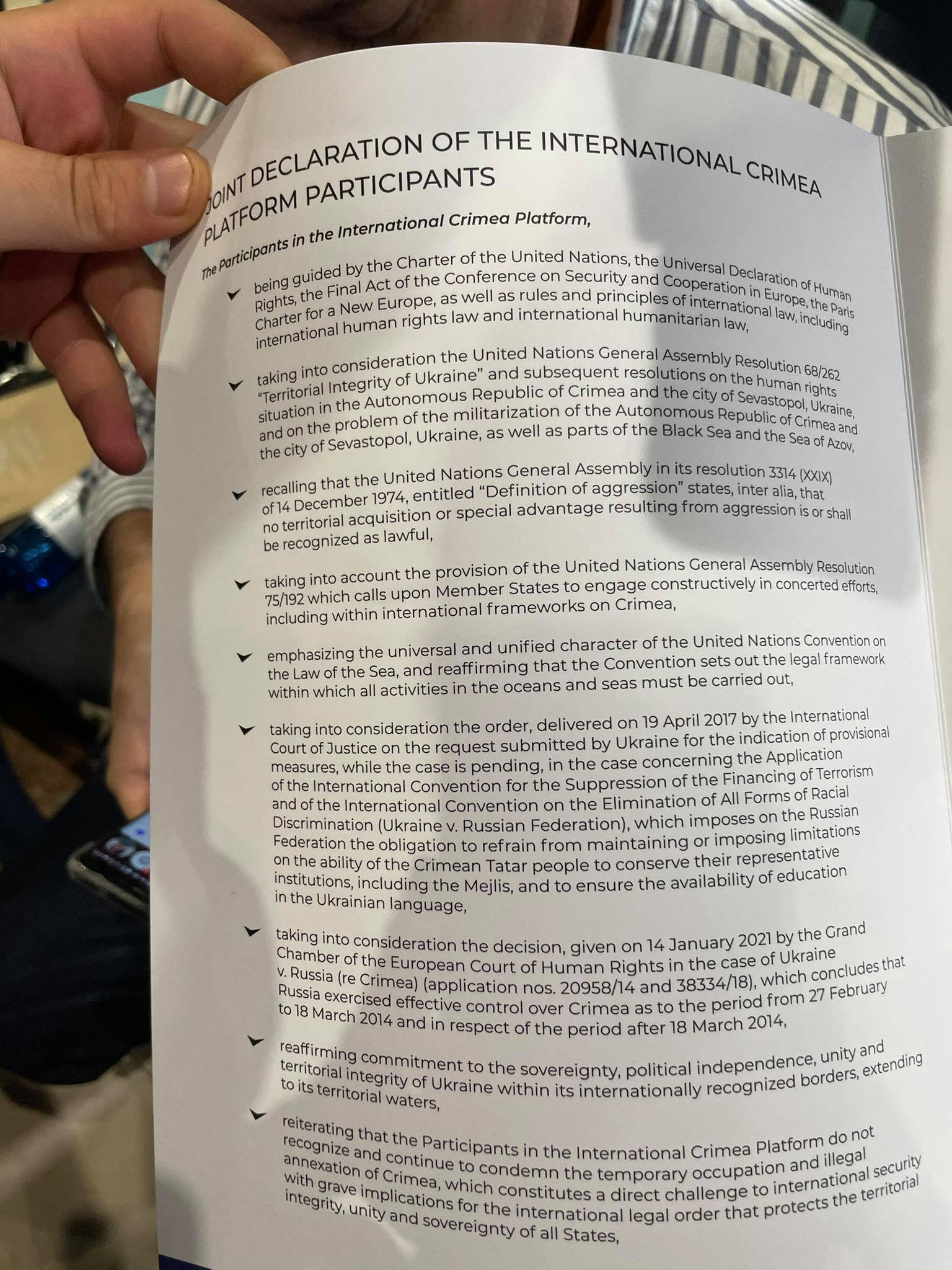 Детали: Зеленский подчеркнул, что декларация Крымской платформы одобрена всеми ее участниками.