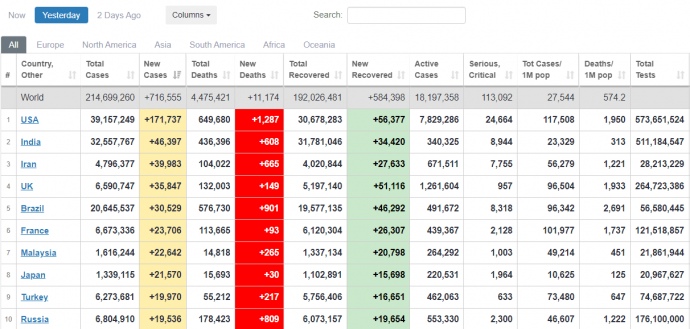 Детали: В частности, в США - 171 737 новых случаев, в Индии - 46 397, в Иране - 39 983.