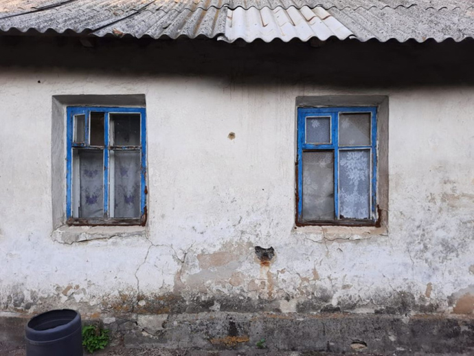 Одна граната от АГС-17 частично повредила стекло в двух окнах здания, а вторая разорвалась в воздухе над огородом, поросшим кустами.