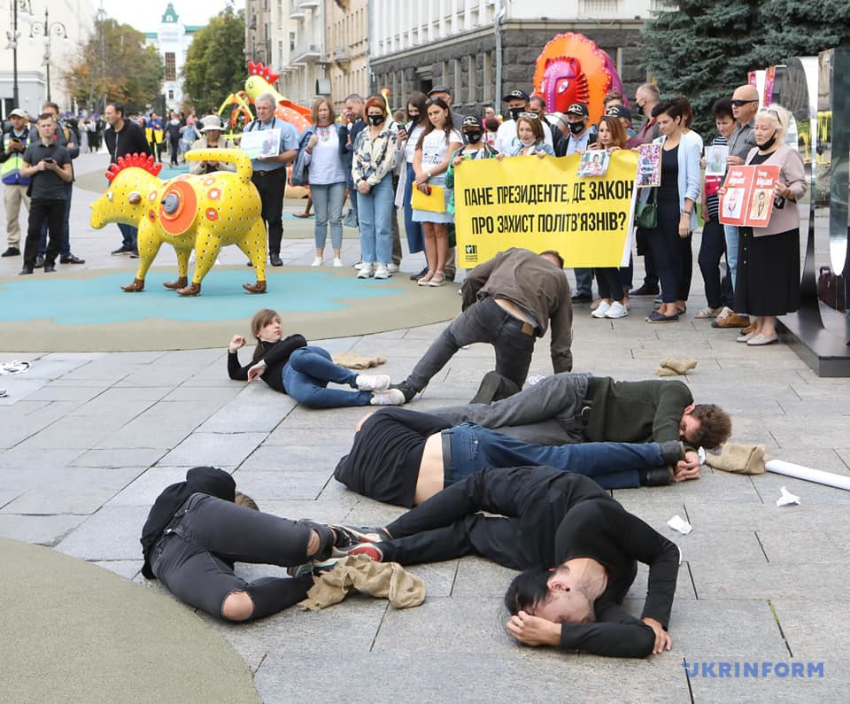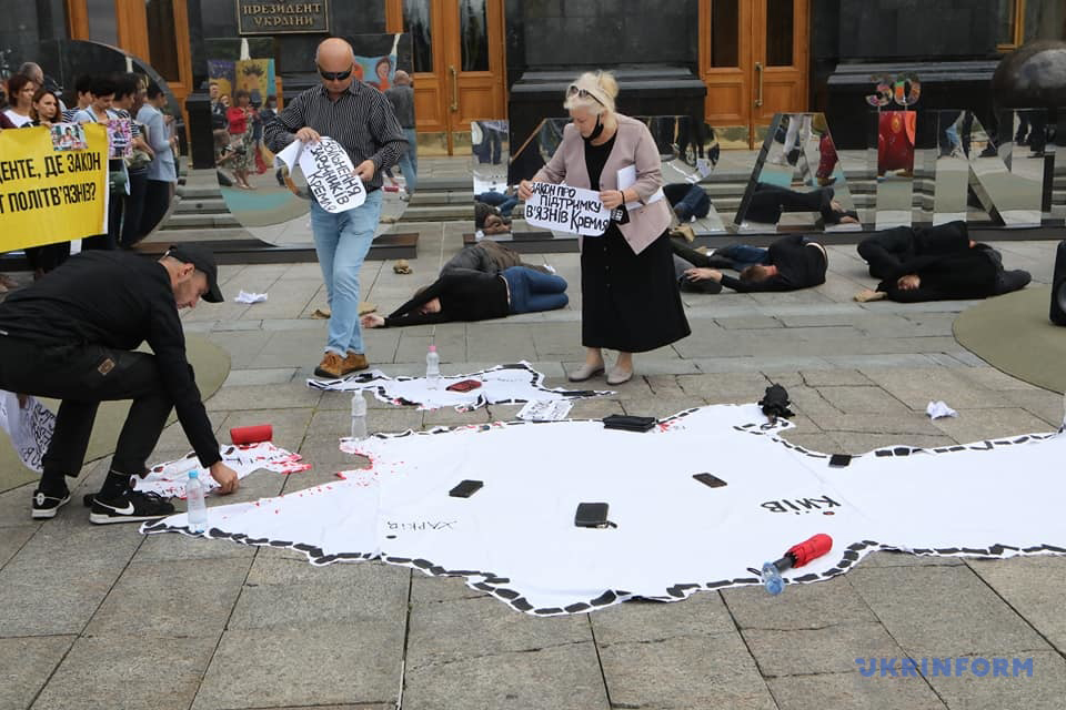 Перед Офисом президента в субботу активисты призвали президентов Украины Владимира Зеленского и США Джозефа Байдена найти пути давления на РФ для освобождения незаконно задержанных и осужденных лиц на временно оккупированных территориях Крыма и ОРДЛО, а также в РФ.