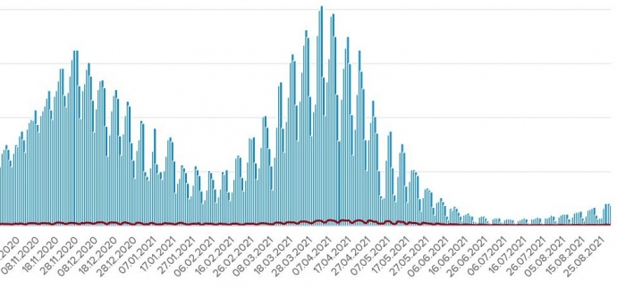 - 27 августа в Украине было обнаружено почти 2,1 тыс. новых случаев коронавирусной болезни, 54 человека умерли от Covid.