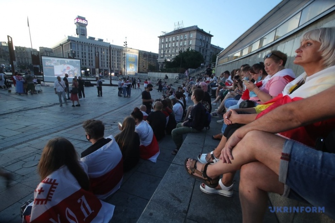 Детали: Несколько сотен человек прошли маршем от посольства Беларуси до Майдана Незалежности в знак солидарности с белорусами.