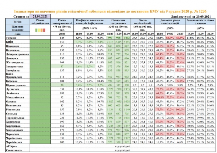 Детали: По состоянию на 20 сентября показатель уровня заболеваемости COVID-19 превышен в Киеве и в 22 регионах.