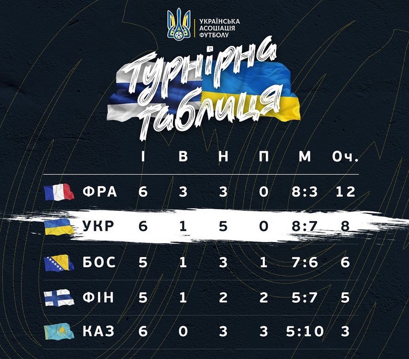 Детали: Украина набрала восемь очков и вернулась на второе место отборочной группы D.