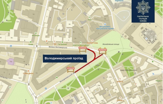 По информации Управления патрульной полиции в г. Киеве, в связи с этим событием с 21:00 11 октября до 24:00 17 октября будет перекрыто движение на Владимирском проезде (от улицы Малой Житомирской до улицы Михайловской)".