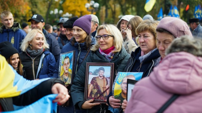 В центре Киева сотни людей собрались на марш ко Дню защитников и защитниц.