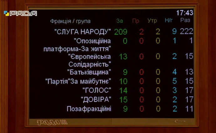 Детали: Проект постановления №6154 поддержали 279 народных депутатов.
