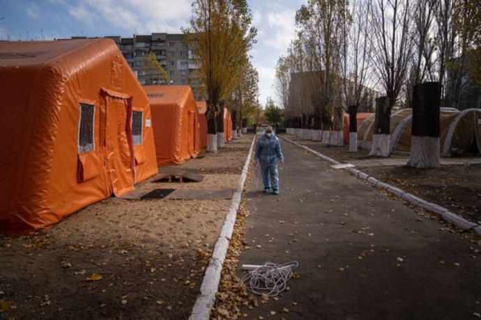 Что предшествовало: В субботу 30 октября в Каховке Херсонской области заработал мобильный госпиталь ГСЧС для больных Covid-19 из 35 палаток.
