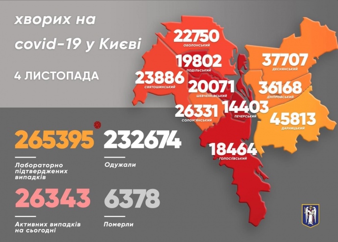 Наибольшее количество случаев заболевания выявили в Деснянском (414), Дарницком (296) и Святошинском (188) районах.