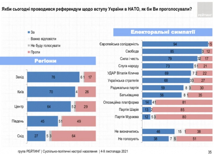 Справка: Социологи "Рейтинга" 4-9 ноября опросили 5000 респондентов старше 18 лет во всех областях, кроме оккупированных территорий, методом CATI (телефонные интервью с использованием компьютера), воспользовавшись случайной выборкой мобильных номеров.