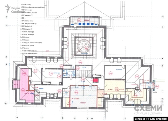 Видео, снятое журналистами уже в ноябре, зафиксировало значительный прогресс в ремонтных работах. Дополнительно "Схемы" получили в свое распоряжение чертеж – планы полной реконструкции и перепланировки дворца Медведчука площадью более двух тысяч квадратных метров.