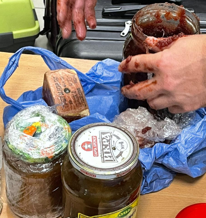 Во время осмотра транспортного средства и находившихся в нем вещей силовики обнаружили банку варенья, в которой находилась тротиловая шашка весом 400 граммов.
