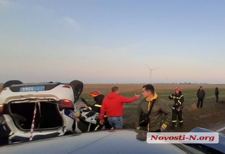 Вечером в субботу, 13 ноября, на трассе Николаев-Одесса автомобиль патрульной полиции Renault Duster столкнулся с Mitsubishi.