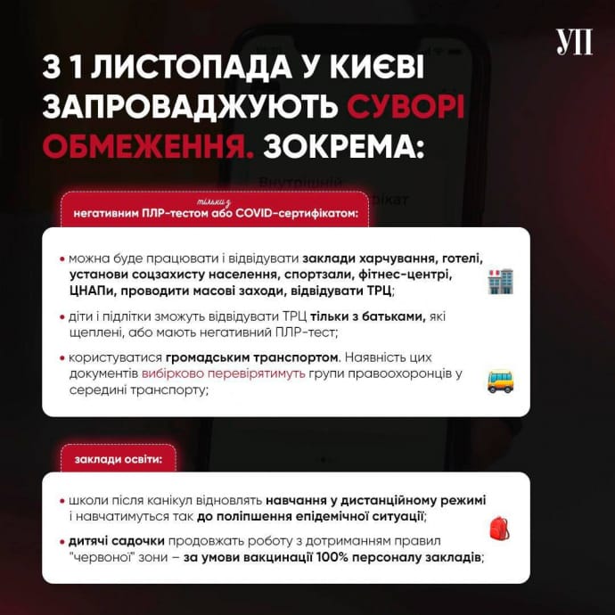 Детали: В "красных" зонах распространения коронавируса запрещается работа заведений общепита, ТРЦ, непродовольственных рынков и магазинов, проведение массовых мероприятий и т.п.