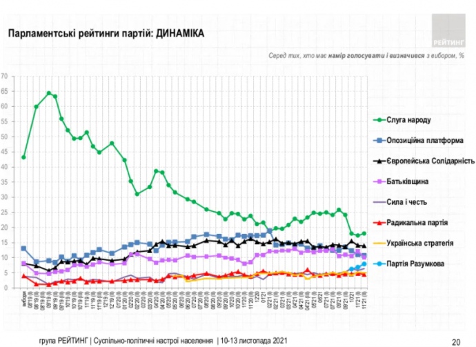 Свежий рейтинг партий: лидер неизменен, но поддержка Разумкова растет