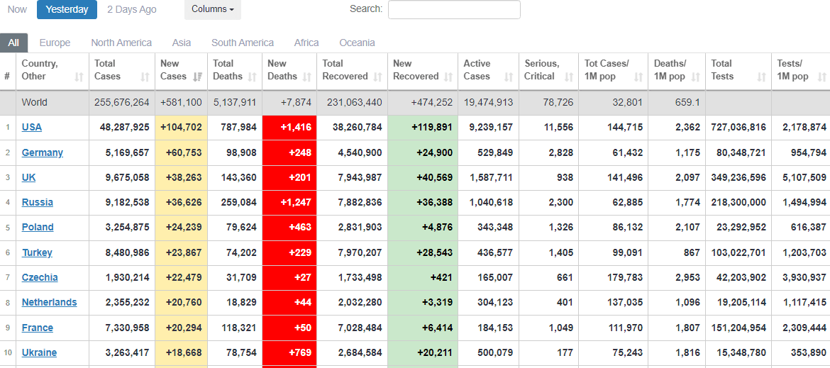 16 ноября в мире обнаружили 581 100 случаев COVID-19.