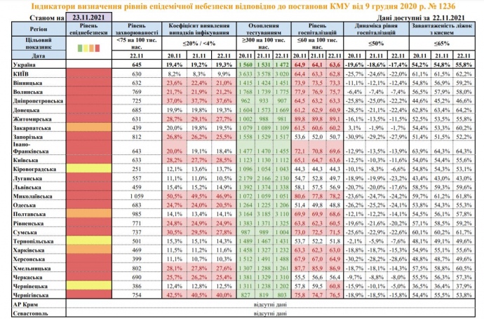 В то же время по состоянию на 22 ноября уровень госпитализаций по стране составляет 63,6, при "норме" 60 на 100 тыс. населения.