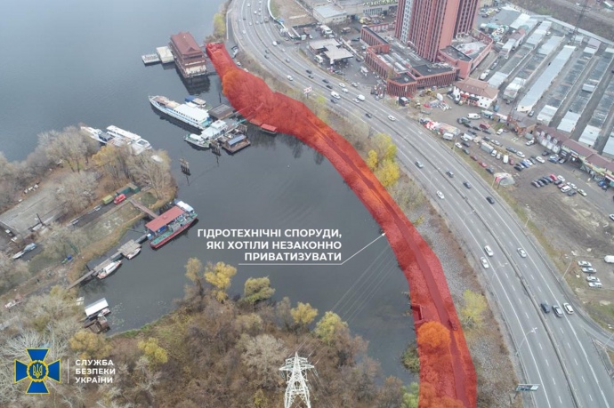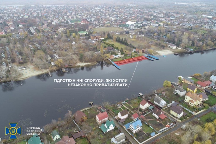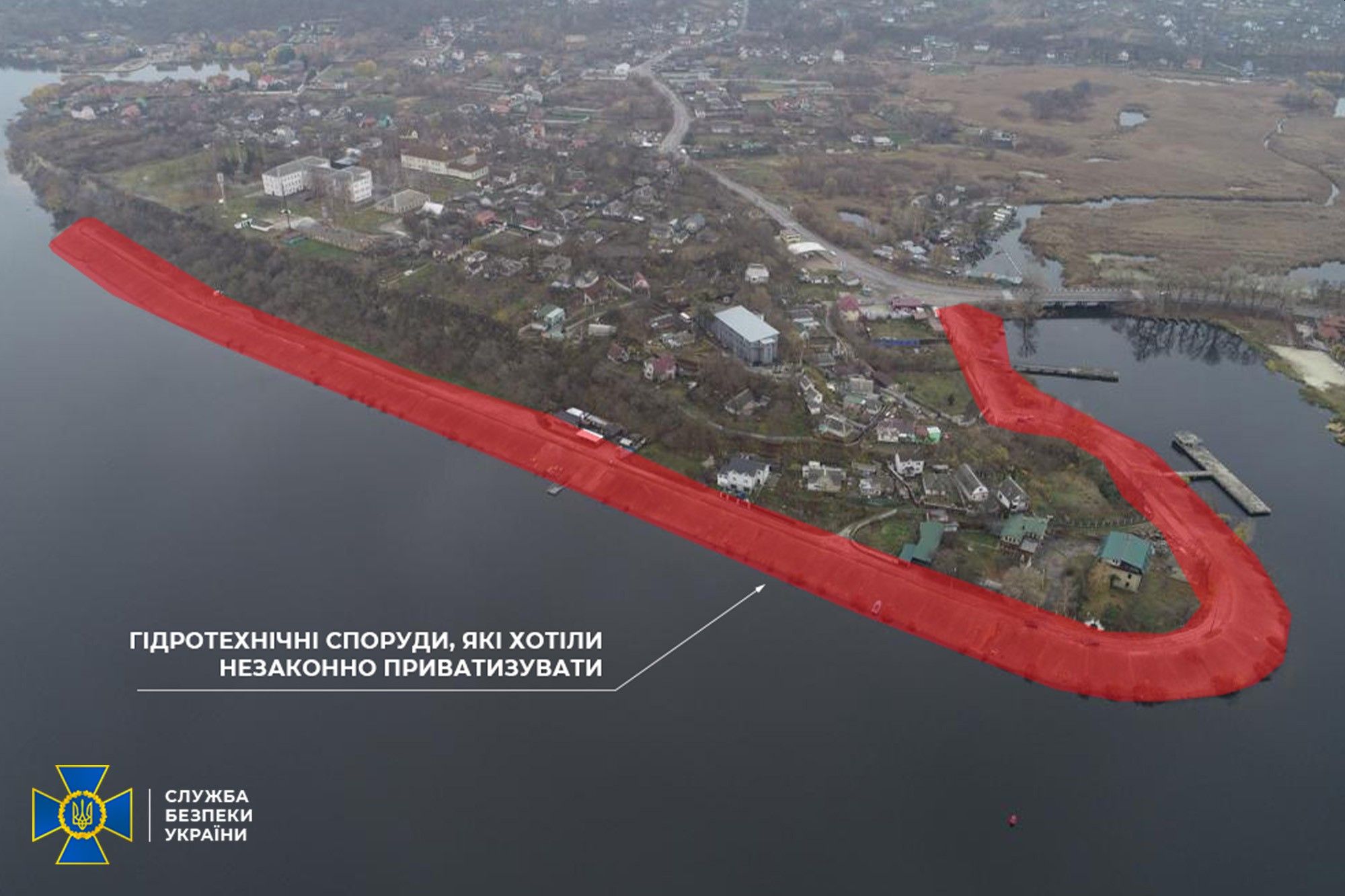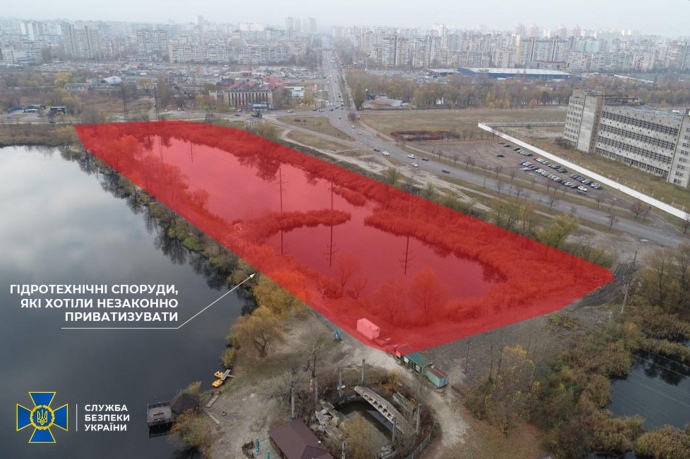 Служба безопасности Украины заявляет, что предотвратила схему незаконного завладения гидротехническими сооружениями и земельными участками вблизи водоемов в Киеве и Киевской области, которые, по данным СМИ, попали в руки бизнесмена Константина Бойко после письма из Нацполиции.