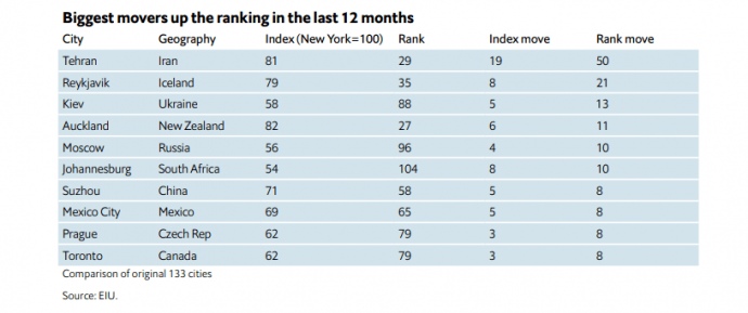 Самым большим "скачком" отличился Тегеран, который поднялся с 79 на 29 место из-за санкций США, которые вызвали дефицит и рост цен. Как отмечается, наибольшее падение произошло в Риме – на 16 позиций до 48.