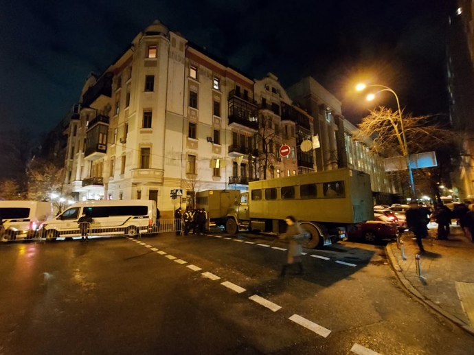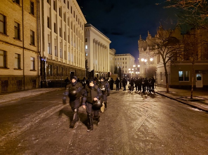 В связи с мерами полиция частично перекрыла правительственный квартал. На пересечении Институтской и Садовой граница полиции, пускают людей, только осмотрев личные вещи. К улице Банковой проход открыт.