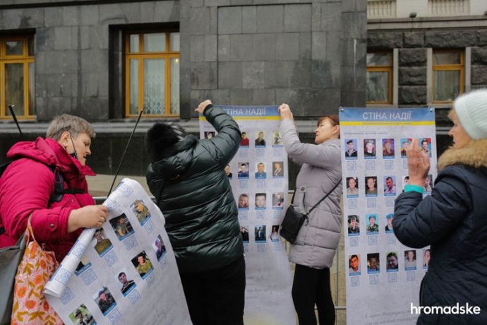 Родственники пропавших без вести на Донбассе устроили возле ОП акцию