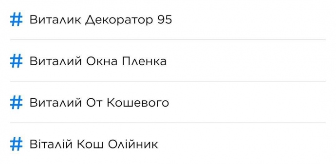 В частности, мужчину обозначали как "Виталий Декорации Квартал", "Декоратор 95", "Декор Лига Смеха" и т.д.