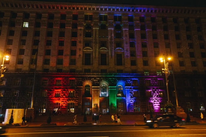 Мэрию Киева подсветили цветами ЛГБТ-флага