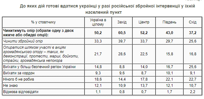 В общем, тем или иным оразом сопротивляться готовы 50,2% украинцев.