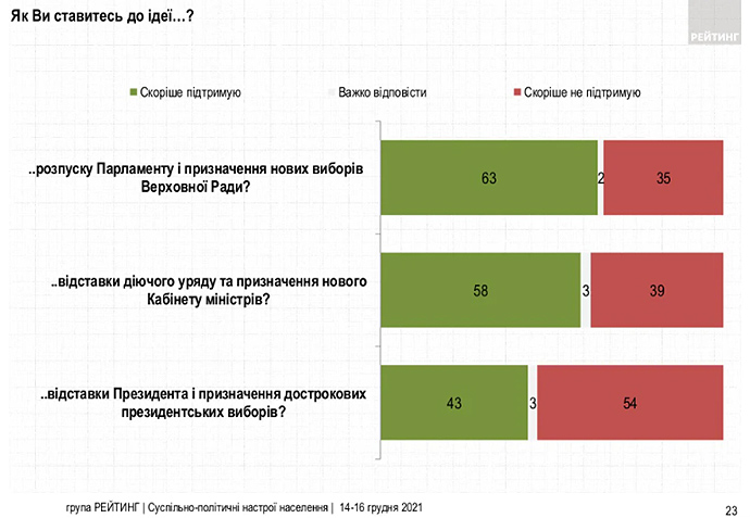 Дословно социологи: "Большинство опрошенных поддерживают роспуск Верховной Рады и Кабинета Министров: 63% и 58% соответственно".