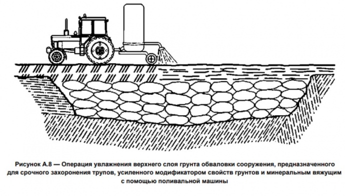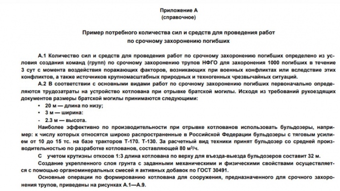В документе описывается, сколько времени нужно на создание братской могилы, какие у нее должны быть размеры и какой бульдозер лучше использовать, чтобы ее засыпать.