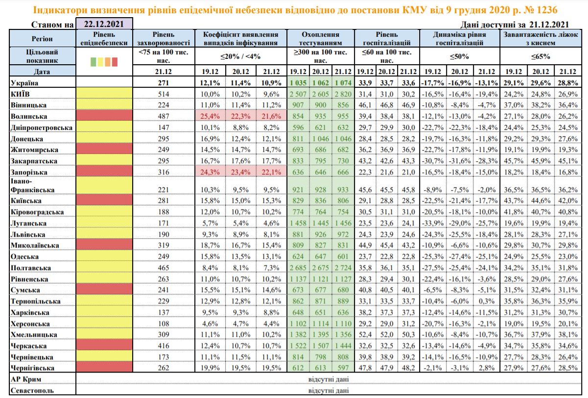 С 23 декабря по решению комиссии ТЭБ и ЧС Житомирская, Киевская, Николаевская, Сумская, Черкасская и Черниговская области перейдут в "желтую" зону.