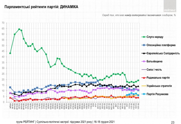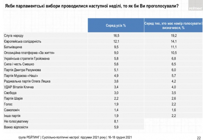 Что предшествовало: По опросу "Рейтинга", проведенному 14-16 декабря, шансы попасть в Раду имели 8 партий.