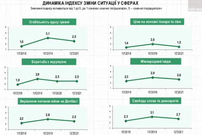 За 2021 год более 60% украинцев увидели изменения с дорогами и технологиями в Украине, но не с борьбой с коррупцией и решением войны на Донбассе.