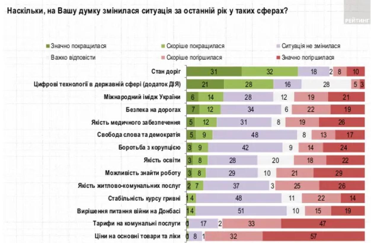 Дословно: "Дороги и цифровые технологии – сферы, где украинцы увидели наибольшее улучшение за последний год.